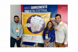 Tem o objetivo de aproximar industriais, fornecedores, governo e parceiros e debater sobre os desafios e tendências do mercado. Foto à esq.: Conrado Vieira, equipe técnica, Alessandra Citelis, gerente geral, e Luciano Chano, suporte técnico (novo colaborador).